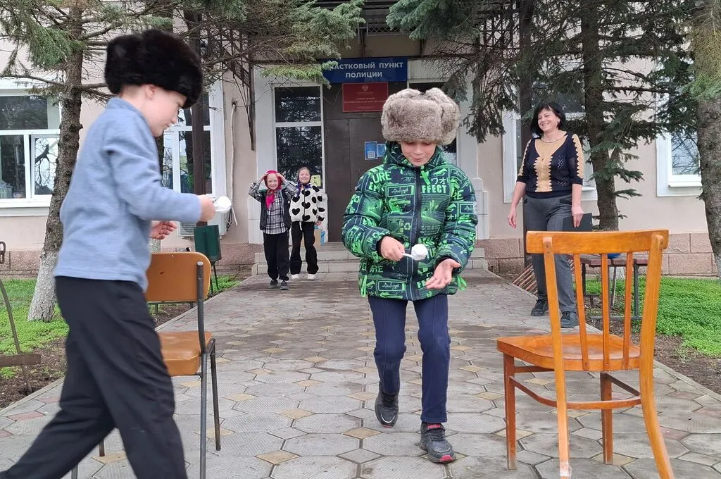🎠 Русская «Курочка Ряба» – тут и смех, и дрожь в руках! Девочки в платочках, мальчики в шапках-ушанках бежали с "яйцом" на ложке. Главное – не уронить «золотое яичко» и быстрее передать эстафету товарищу. Получилось и весело, и очень азартно!