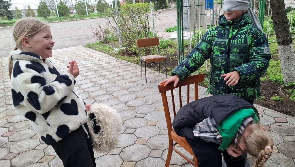 🧣 Татарская игра «В узелок» – выбрали водящего считалочкой «Эники-беники…», а потом платок, завязанный узелком, как это было в старину, полетел по кругу. Водящий носился снаружи, пытаясь перехватить «узелок» на лету. Кто поймал – сам водит! Ребята визжали от восторга.