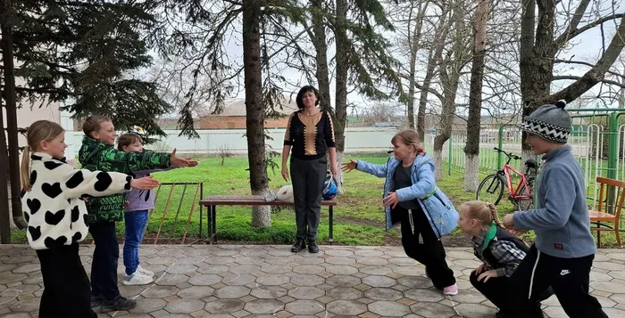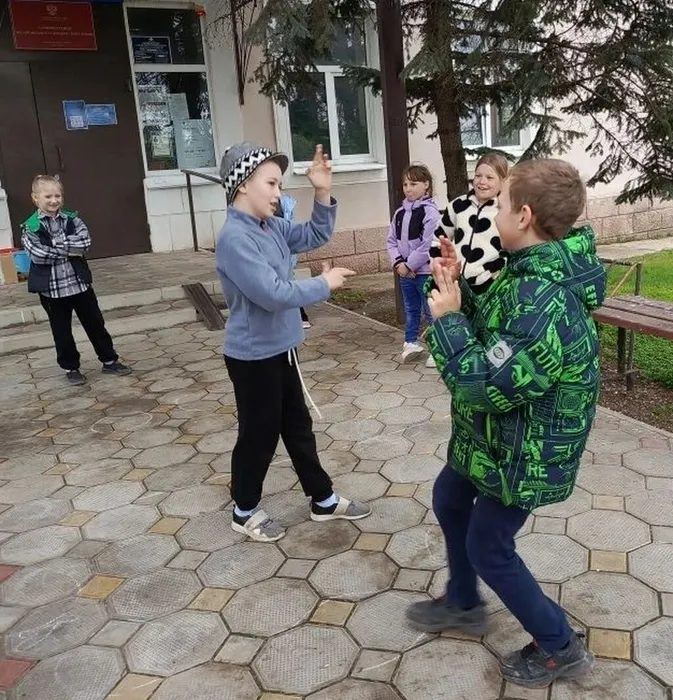 🌿 Казачья игра «Плетень» – красивое завершение. Участники берутся за руки, создавая «плетень». По команде «Волна!» первая пара приседает, затем вторая – идёт волна. «Плетень, расплетись!» – все разбегаются и танцуют. «Плетень, заплетись!» – нужно быстро встать в шеренгу и снова сплестись в правильном порядке. Получилось очень дружно и зрелищно.